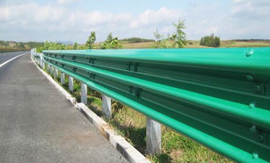 噴塑波形護欄板(綠色)噴塑護欄板是半剛性護欄的主要形式,它是一種以波紋狀鋼護欄板相互拼接并由...